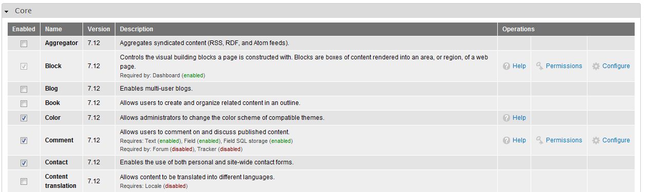 - Find the “Contact” module, place a check mark next to it and click "Save configuration"